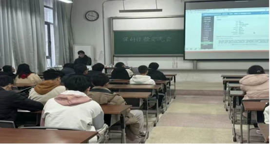 11月30日下午, 邀请大四年级保研至湖南大学的优秀学长崔刘亚在明理北101为大家分享保研经验,崔刘亚向低年级同学深入讲解保研流程及成功经验,进一步帮助低年级学生明晰学术成长路径。他强调平均学分成绩是获得保研资格的重要基础,在日常就要巩固专业知识,同时也强调了科研竞赛经历在推免面试中的重要作用,引导低年级同学积极参加各类学科竞赛。
