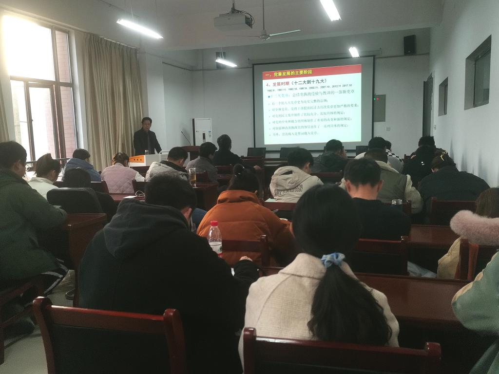 为扎实推进党史学习教育深入开展,12月9日下午,力物学院在学院楼A323报告厅开展党史学习教育,邀请校离退休处桂曙光处长讲授专题党课,学院师生党员八十余人参加了专题学习。