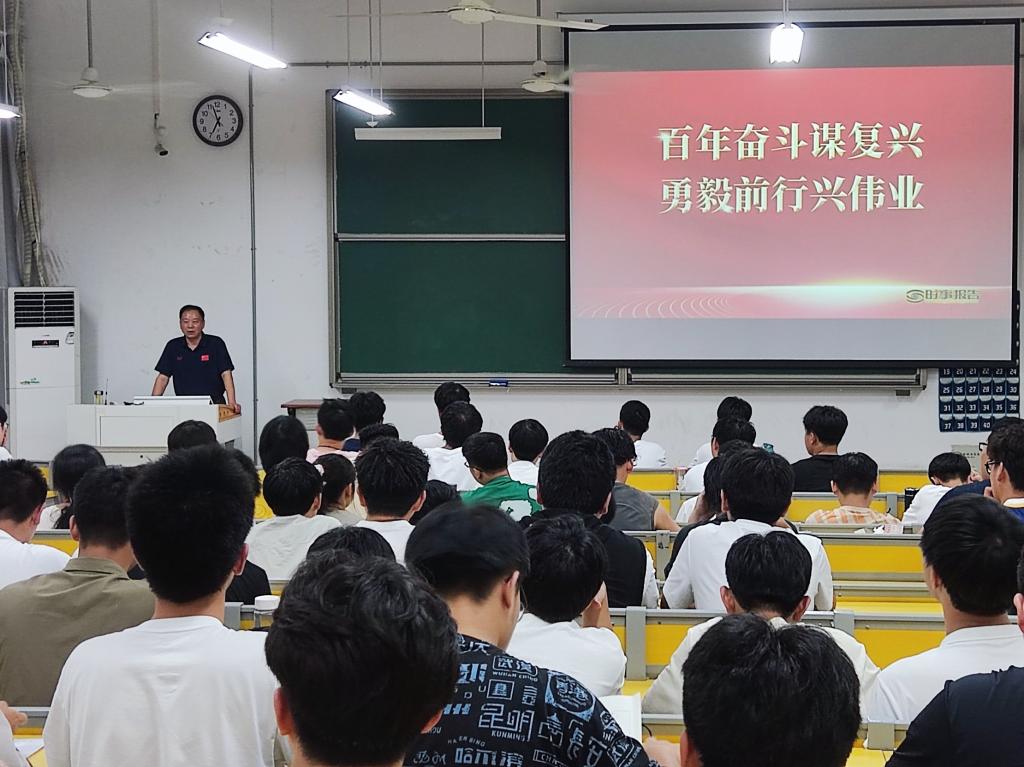 6月4日晚,校党委常委、副校长宫能平以《百年奋斗谋复兴 勇毅前行兴伟业》为题,在明理南110教室为力物学院2021级的同学上了一堂生动的思政课。